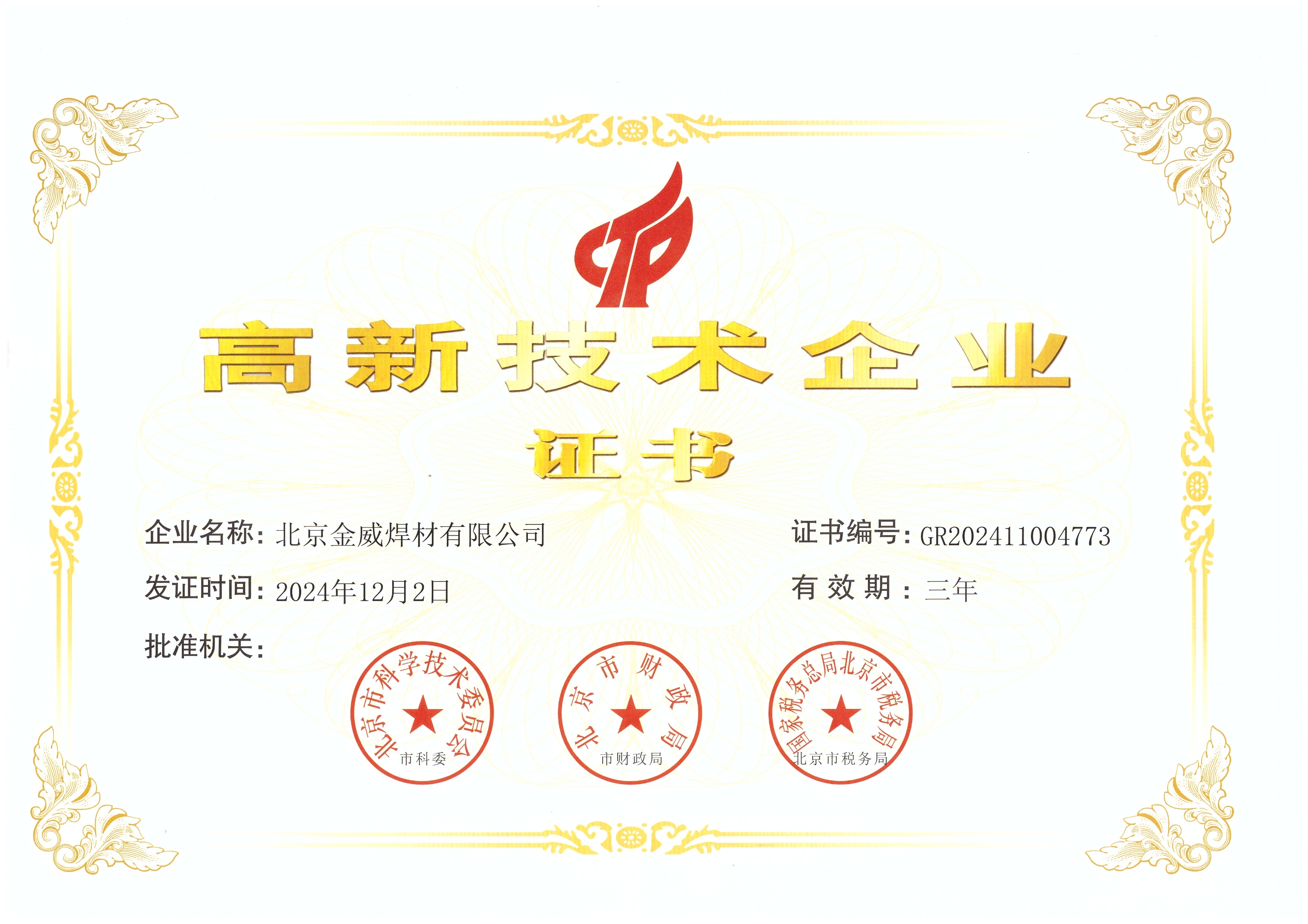 高新技術企業證書