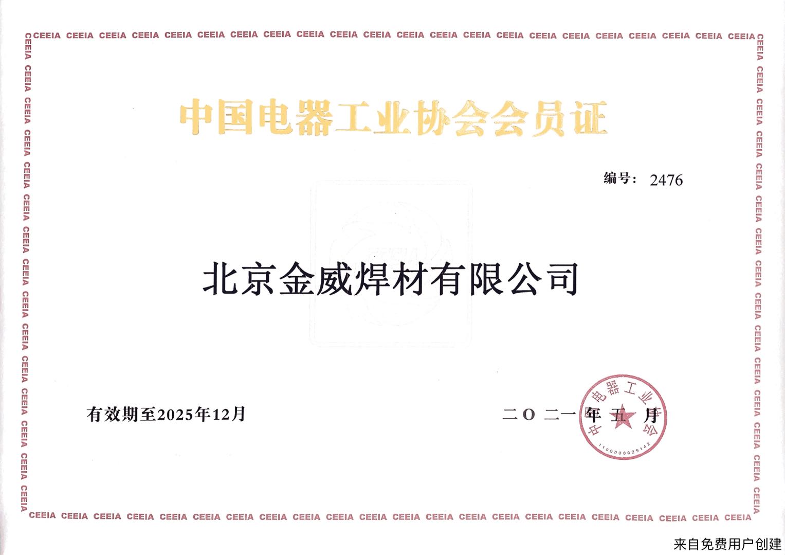 中國電器工業協會會員證